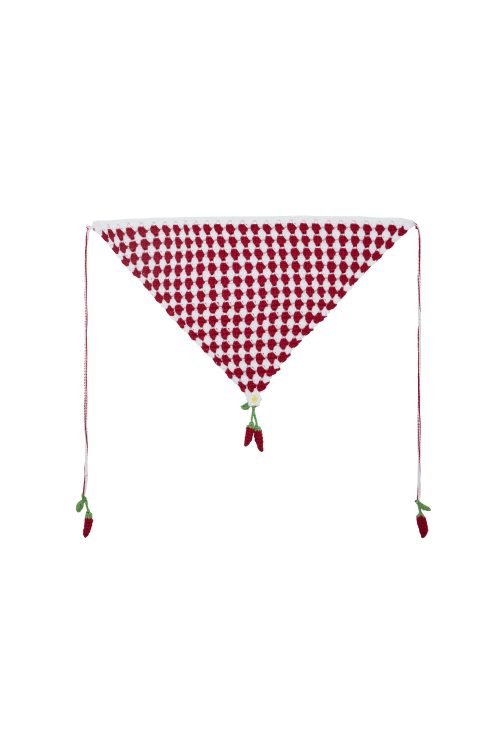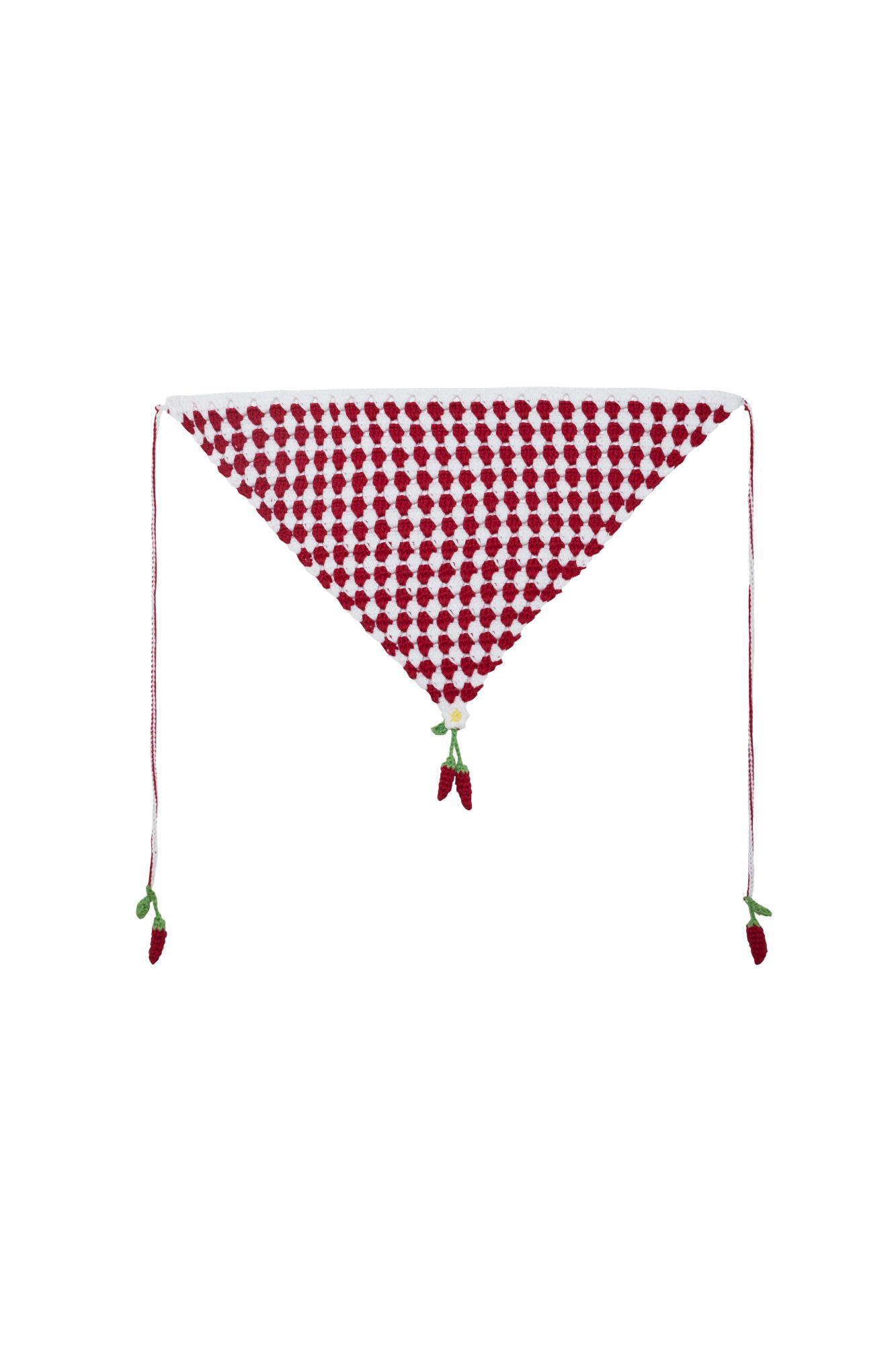 Knit headscarf is a playful accessory that brings a pop of color to your seasonal looks. Finished with a knitted chili detail at the back, it adds a subtle yet distinctive touch to any outfit.
