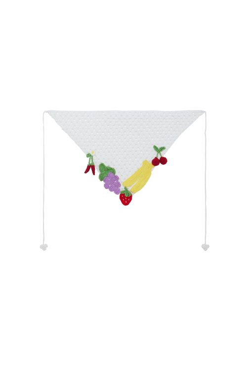 Knit headscarf is a playful accessory that adds a pop of color to your seasonal looks. Featuring a Mixed Fruit knit detail at the back, it brings a fun and distinctive touch to any outfit.