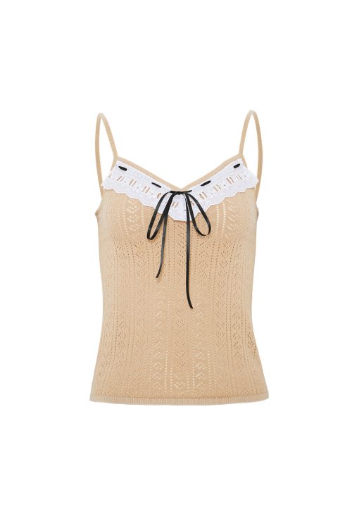 100% cotton pointelle knit camisole with cotton eyelet and bow details