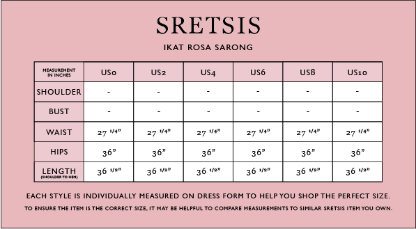 A rayon sarong crafted in the signature SRETSIS ROSEHAZE print in ROSETONE, detailed with an adjustable waist tie that follows the silhouette. A distinctive statement piece created especially for this Songkran season.