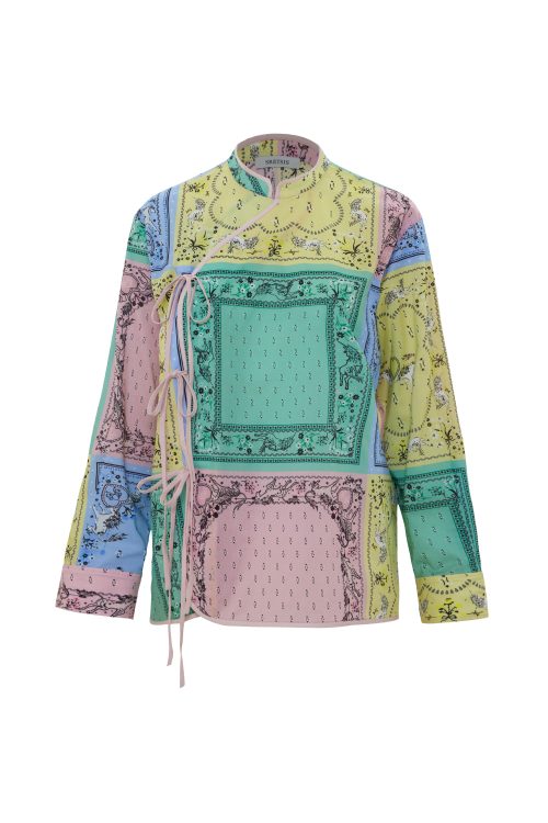 The long-sleeve cotton shirt in the Unicorn Bandana print, named “Lao Gong” in Chinese is designed especially for the Lunar New Year. The piece features a diagonal front panel that ties into a bow, adding a distinctive detail while keeping the silhouette easy to style. Pair it with the matching LAO GONG SHORTS or LAO GONG PANTS for a coordinated festive look.