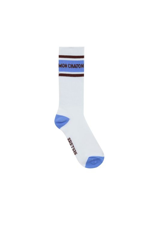 Cotton socks detailed with the phrase “Mon Chaton” a French expression meaning kitten or my dear. A subtle yet distinctive accent that adds character to everyday styling.