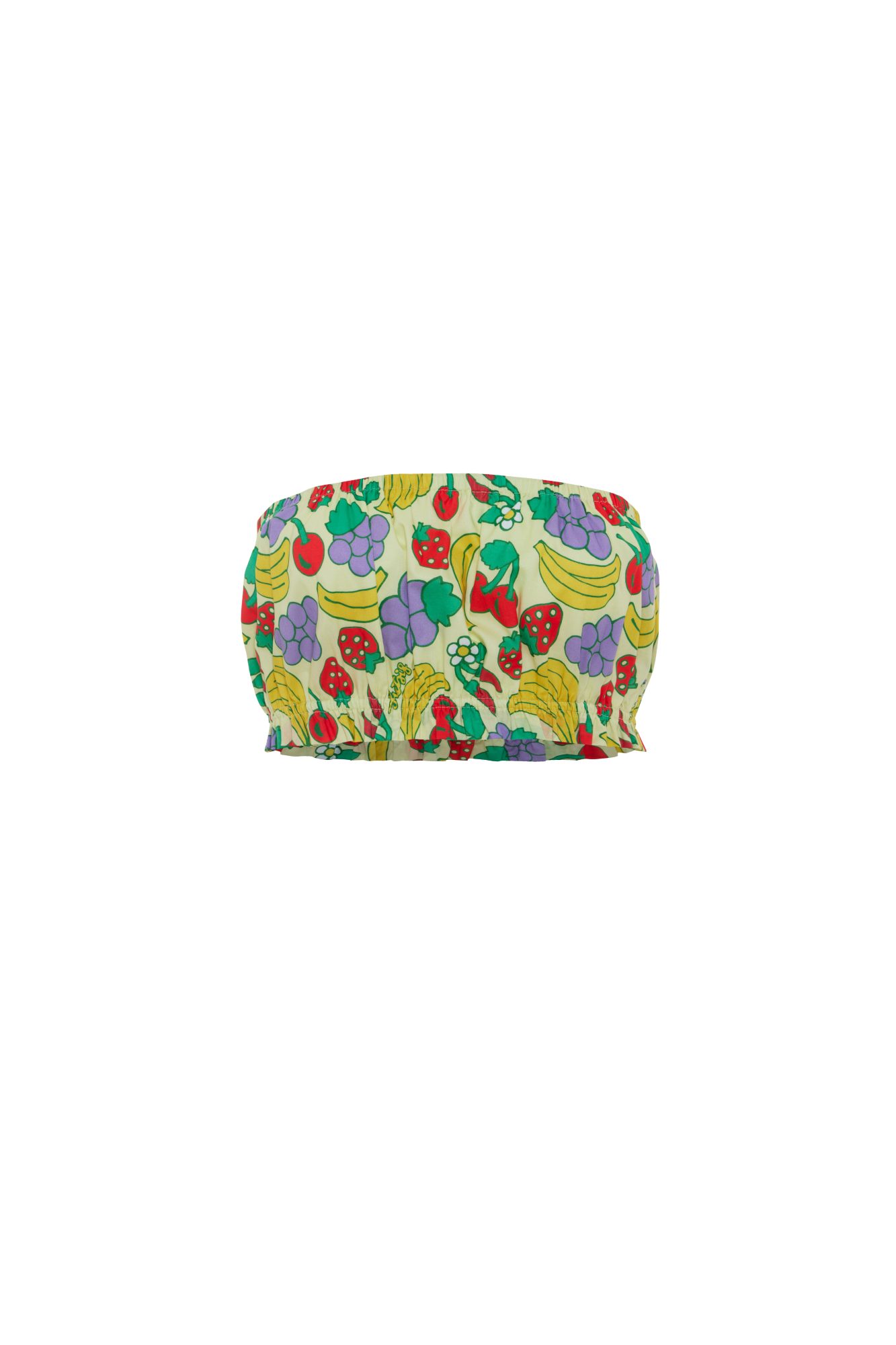 A cotton bandeau top in Tutti Fritti print, featuring a Banana Yellow tone that brings a fresh, subtly bold character perfect for beach days or sun-filled getaways. Style it with the CABANA BANANA SKIRT for a complete resort-ready look.
