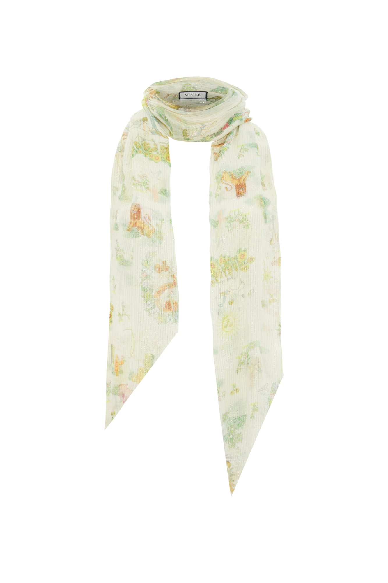 A silk-lurex scarf printed with the Syzygy Stardust motif, designed to infuse your look with dimension and radiance. Perfectly styled alongside The Lovers Camisole or The Lovers Dress in matching prints for a flawlessly cohesive ensemble.