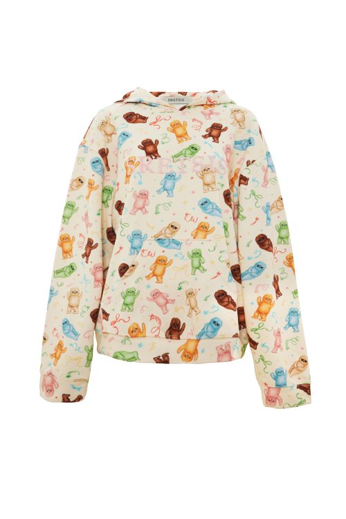 From the Ludo’s Party collection, this French terry hoodie captures Mr. Ludo’s playful spirit in vivid hues of brown, pink, blue, green, and orange, surrounded by colorful ribbons and bows. Pair with Xmas Morning Sweat Pants for a cozy, cheerful winter look.